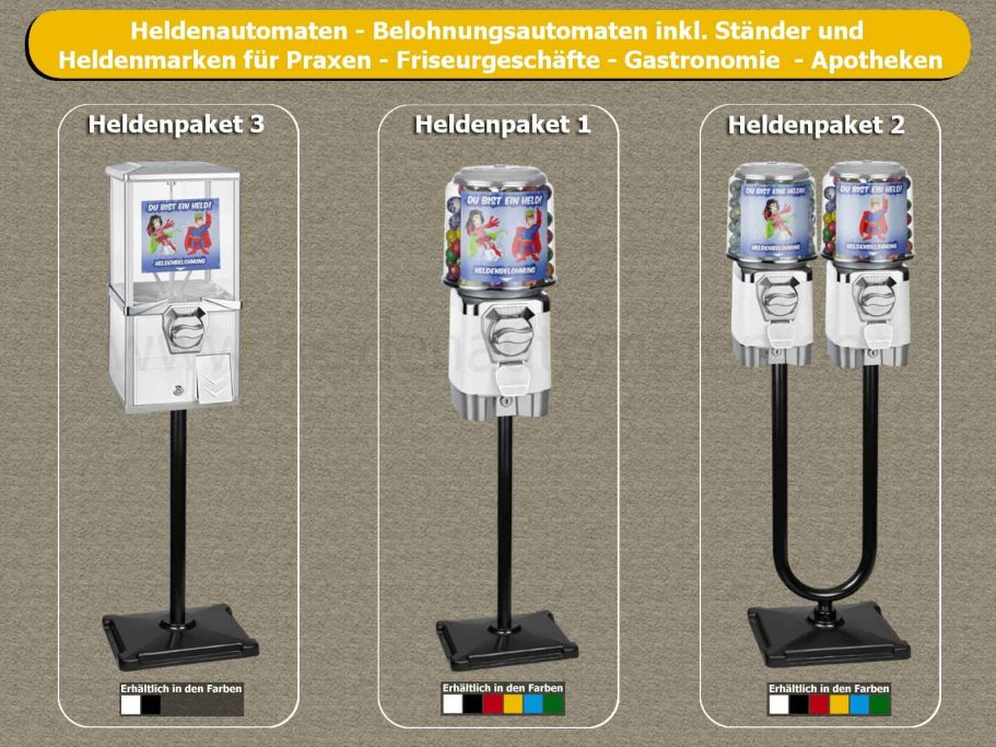 Die Automaten, die wir in unserem Online-Shop anbieten, kennen Sie sicher noch aus Ihrer Kindheit. Münze reinstecken. Einmal drehen. Kaugummi oder Kapsel rausnehmen. In unserem Onlineshop finden Sie unser gesamtes Sortiment an Kaugummiautomaten, Nussautomaten und Warenautomaten, ebenso die passende Füllware, Leerkapseln, Ständer, Gehäuse und Ersatzteile.